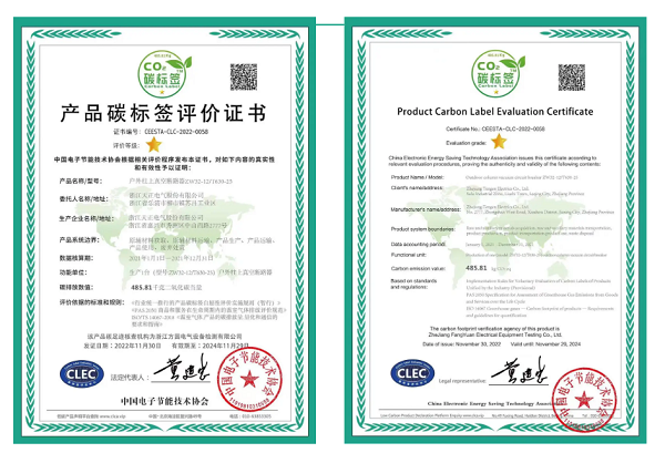 “碳”路领航再获佳绩,继获TÜV莱茵全球首张输配电领域碳足迹计算证书后,糖心vogo入口电气再获中高压领域碳标签评价证书助力电气产业再蓄绿电新势能